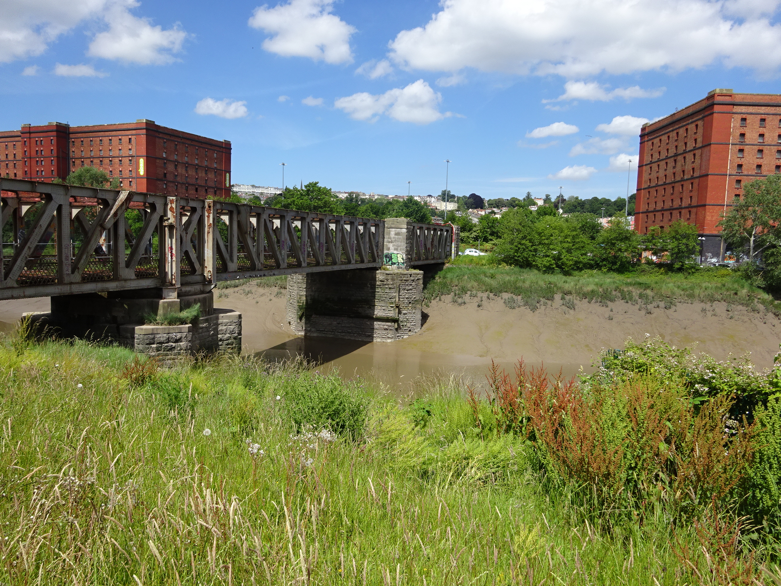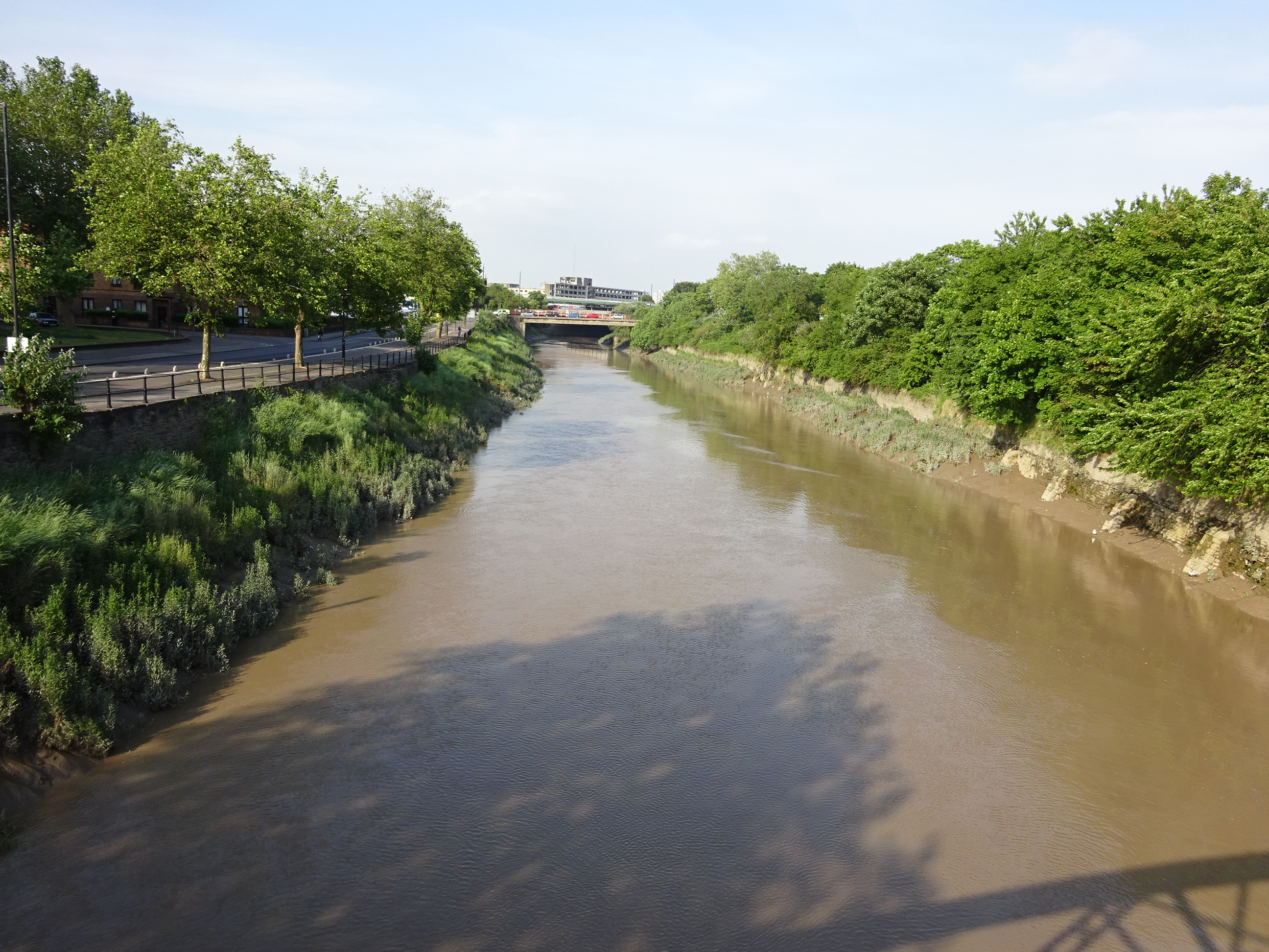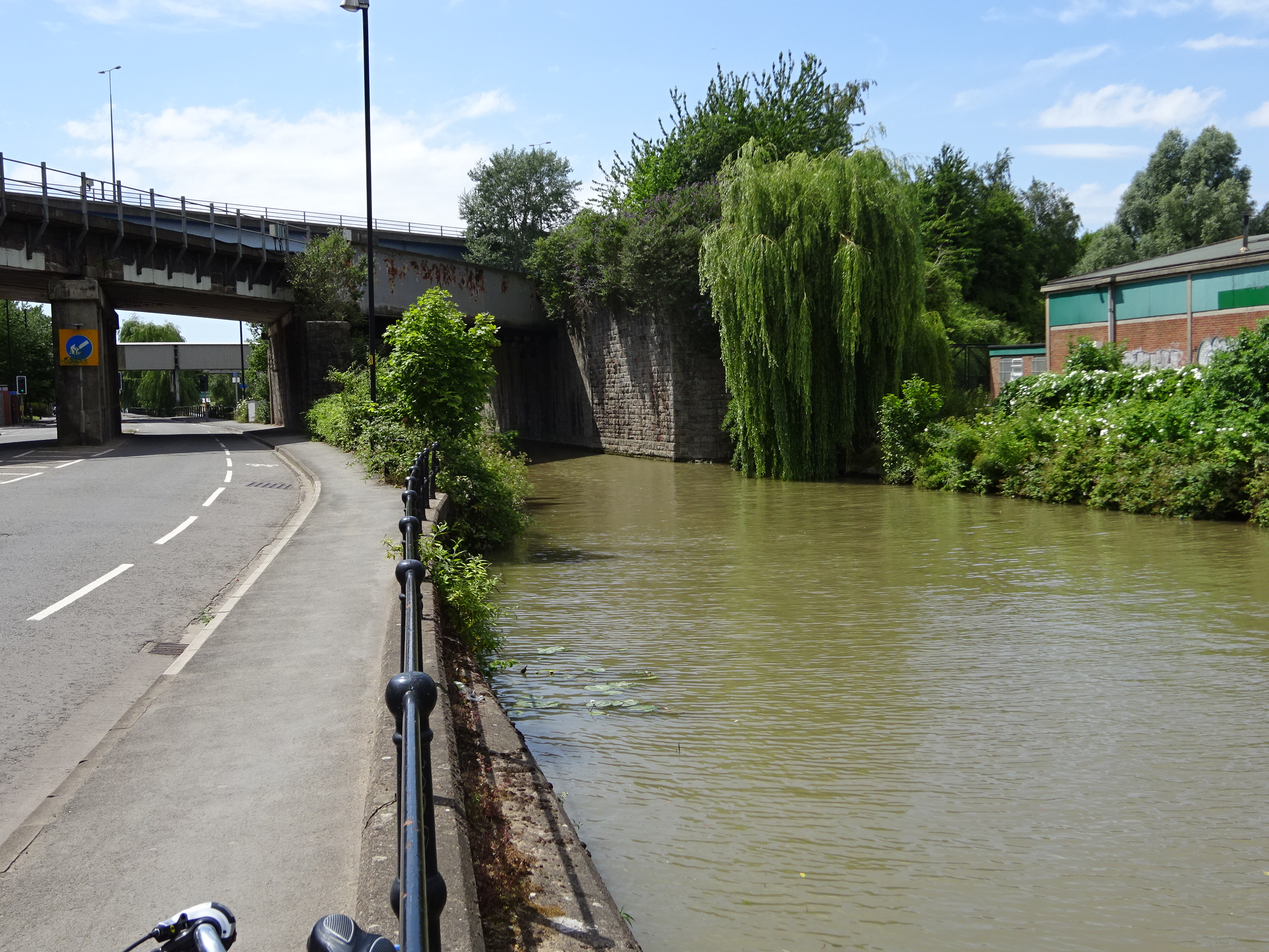 | On the other side of Temple Meads station you can walk along either side of the Avon New Cut, only being diverted (on the south side) at the western end of Coronation Road. There are numerous road and pedestrian bridges. This section of the river is decidedly urban. | |