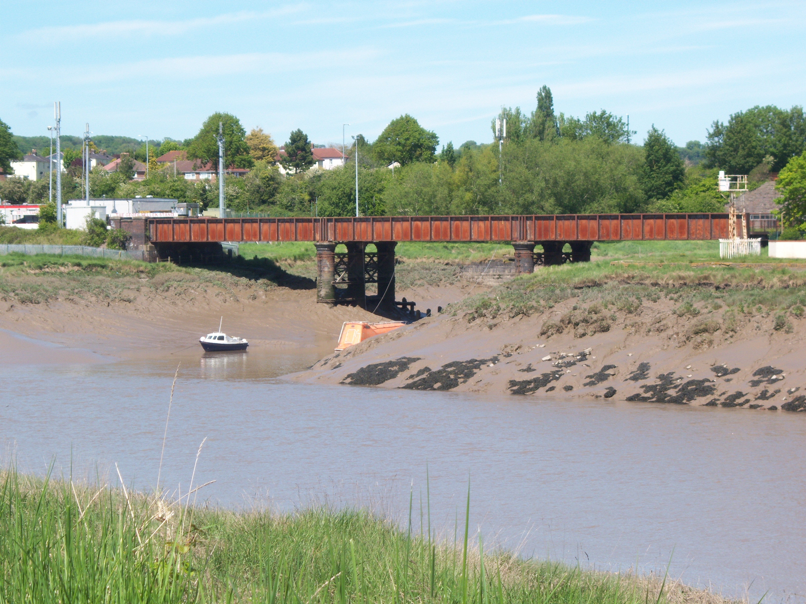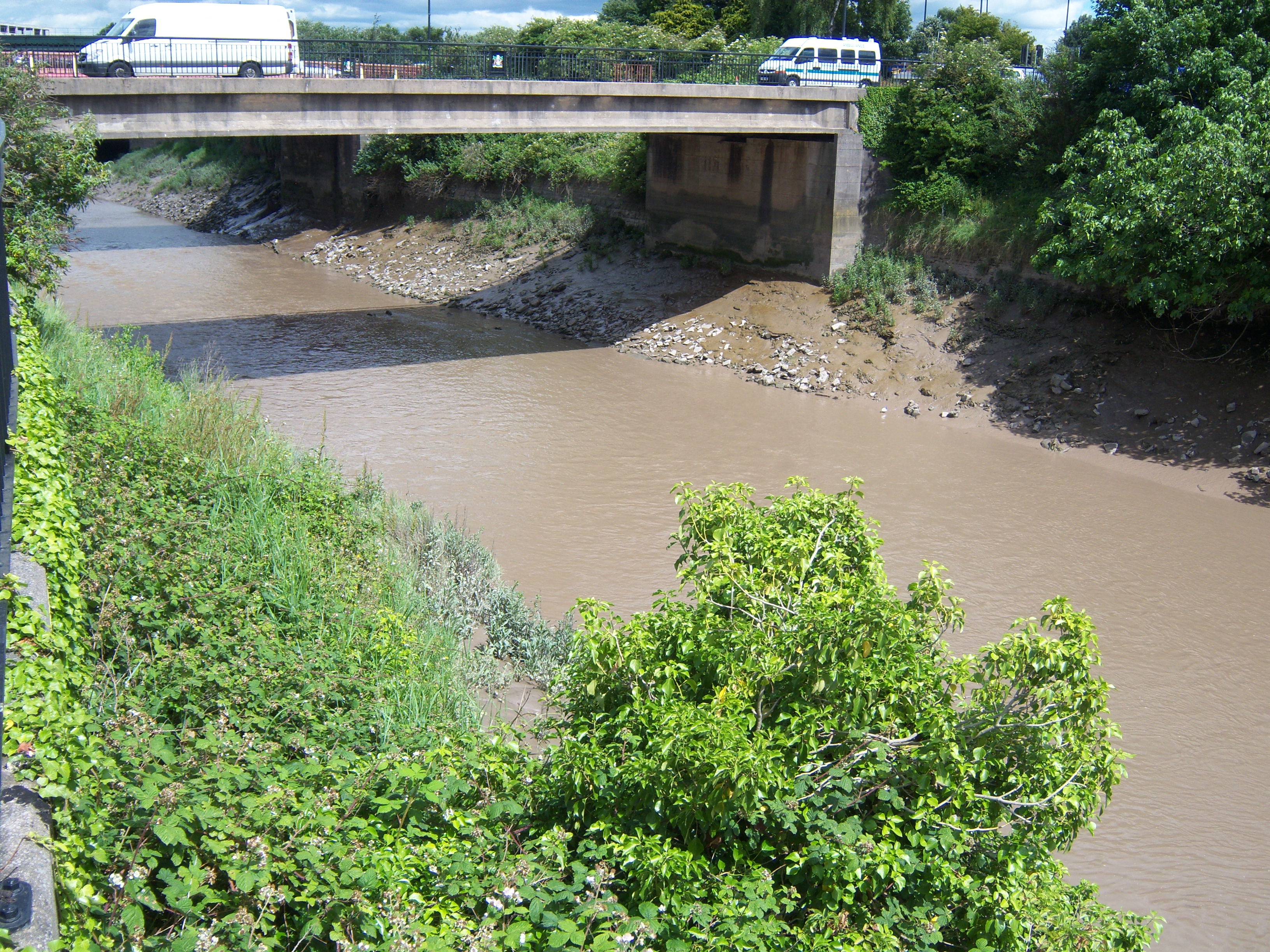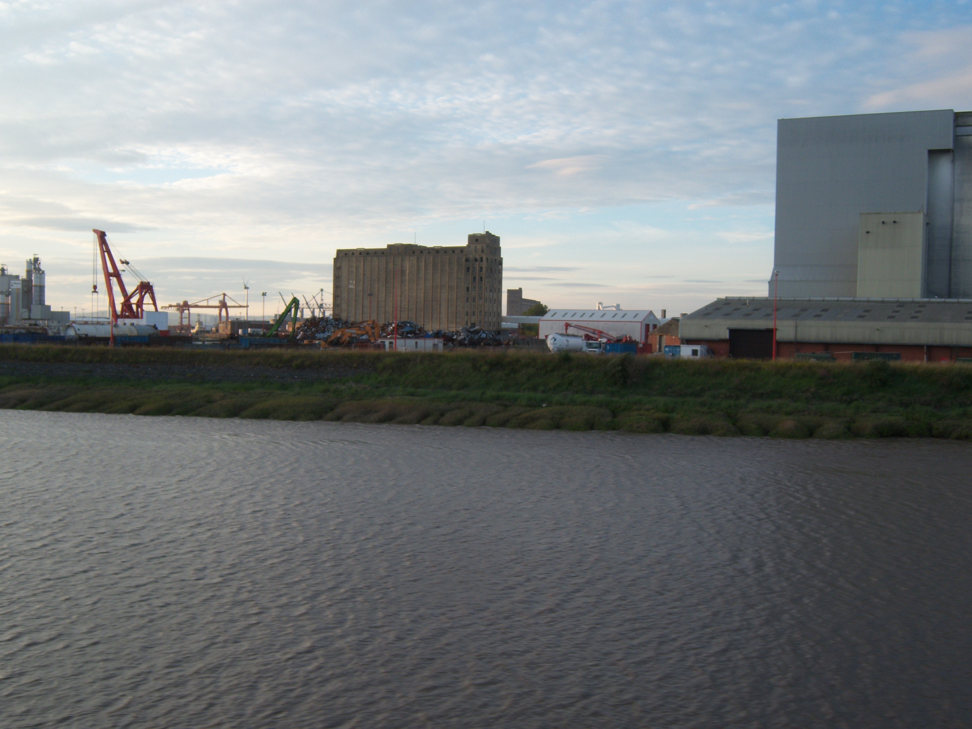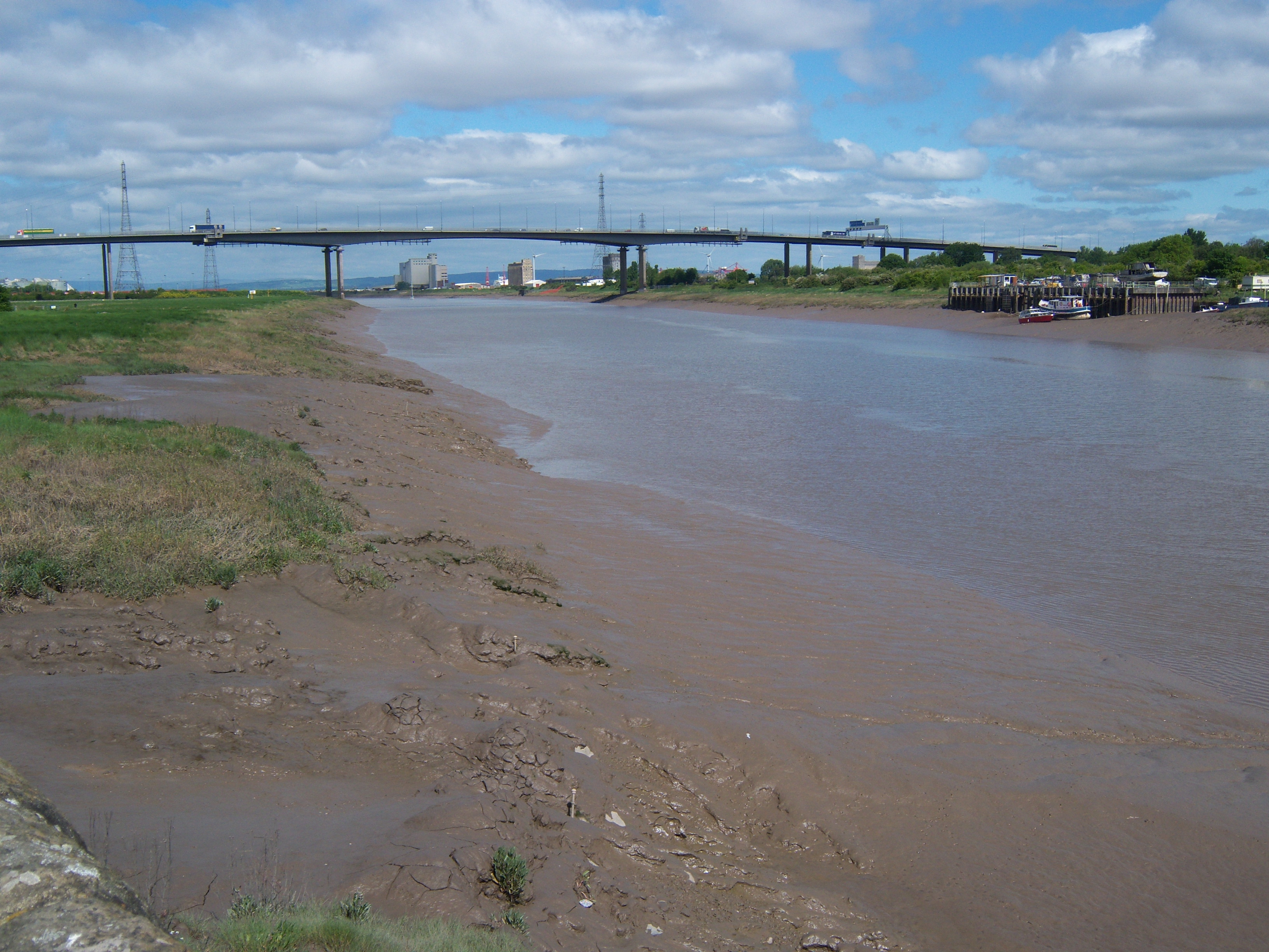 | The Avon approaches the M5 bridge. Avonmouth in the background. | |