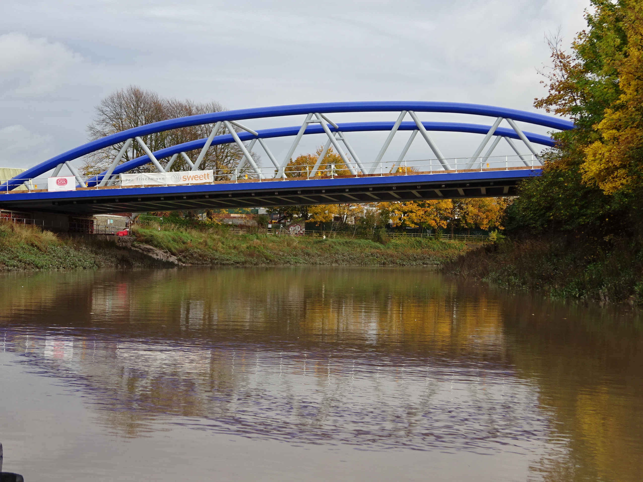 | Just upstream from Temple Meads a new bridge crosses the New Cut to provide access to the new Arena |