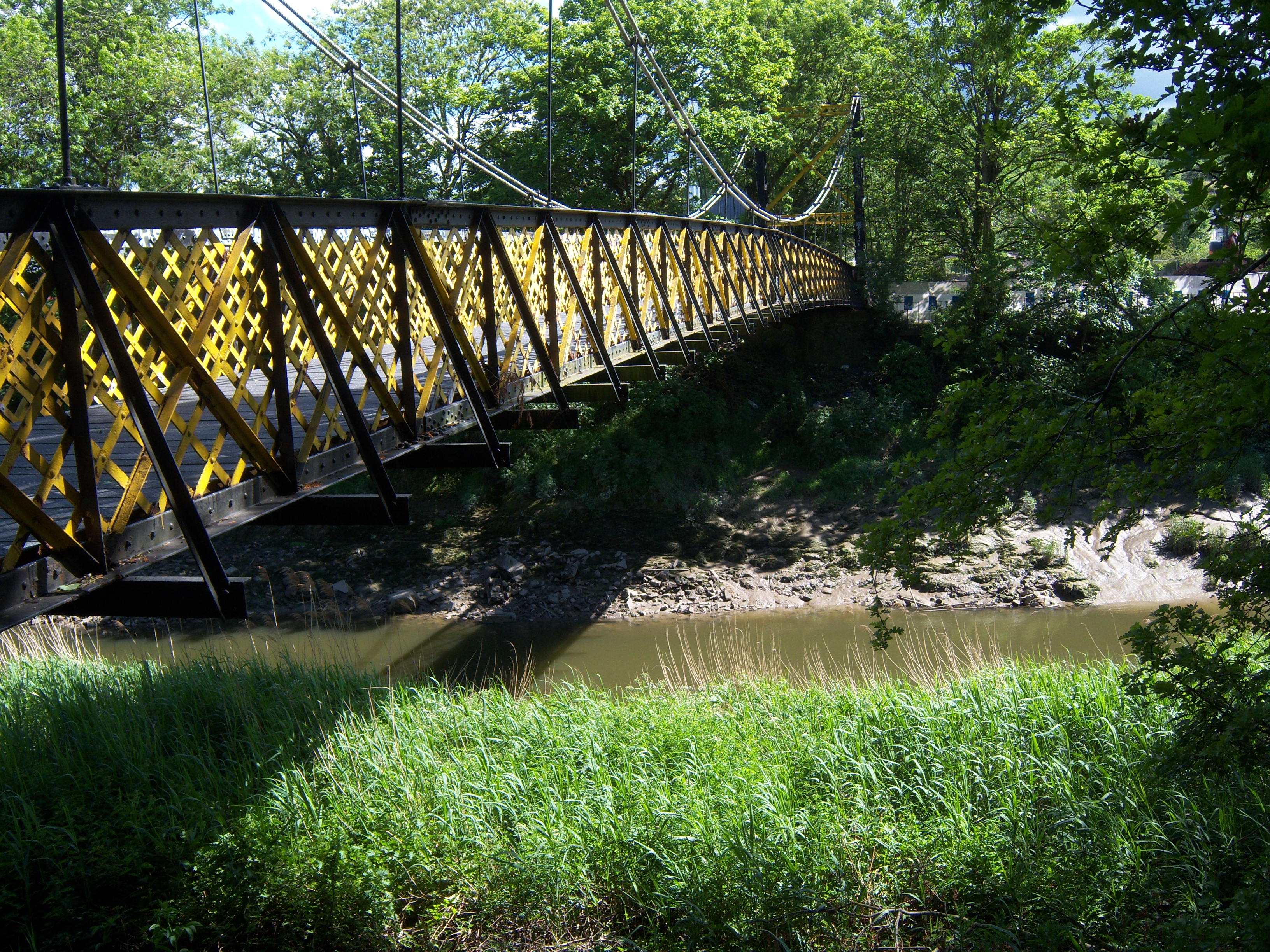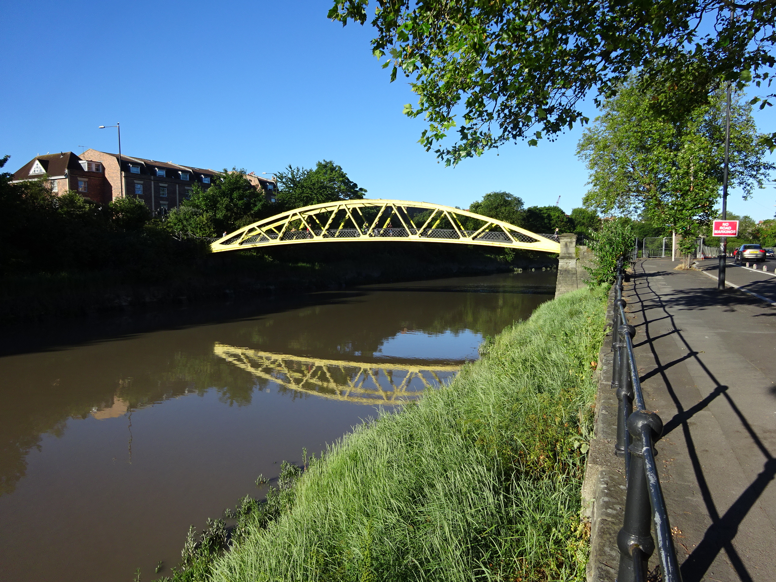 | The Langton Street footbridge was erected in 1883, as a temporary bridge, where the current Bedminster Bridge stands. It was subsequently transported on barges to its current location. Langton Street was wiped off the map in World War II. The bridge became known as the "banana bridge" because of its shape, and was subsequently painted yellow. | |