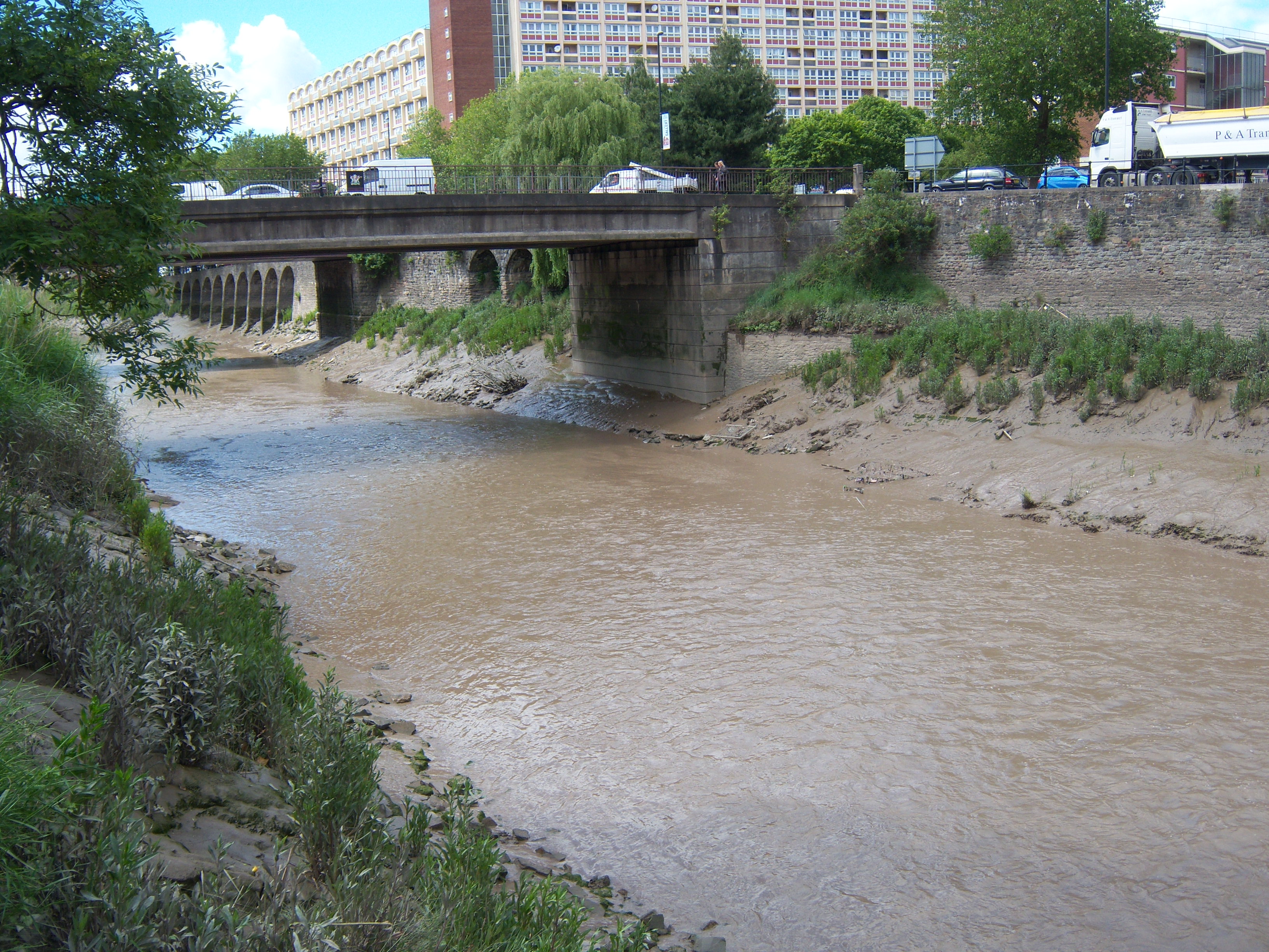 The River Malago rises in the northern slopes of Dundry hill and flows through south Bristol, often in culverts, until it joins the Avon New Cut just downstream of Bedminster Bridge.