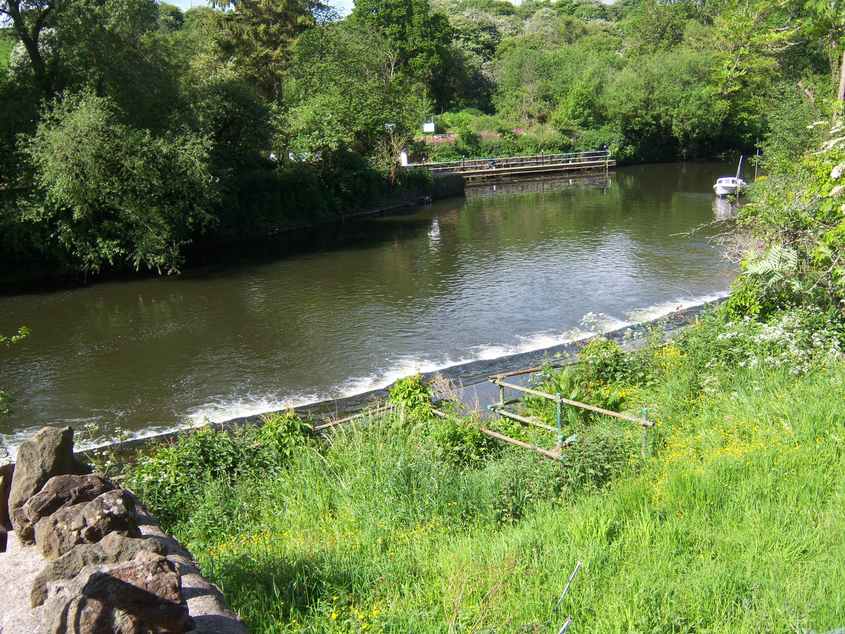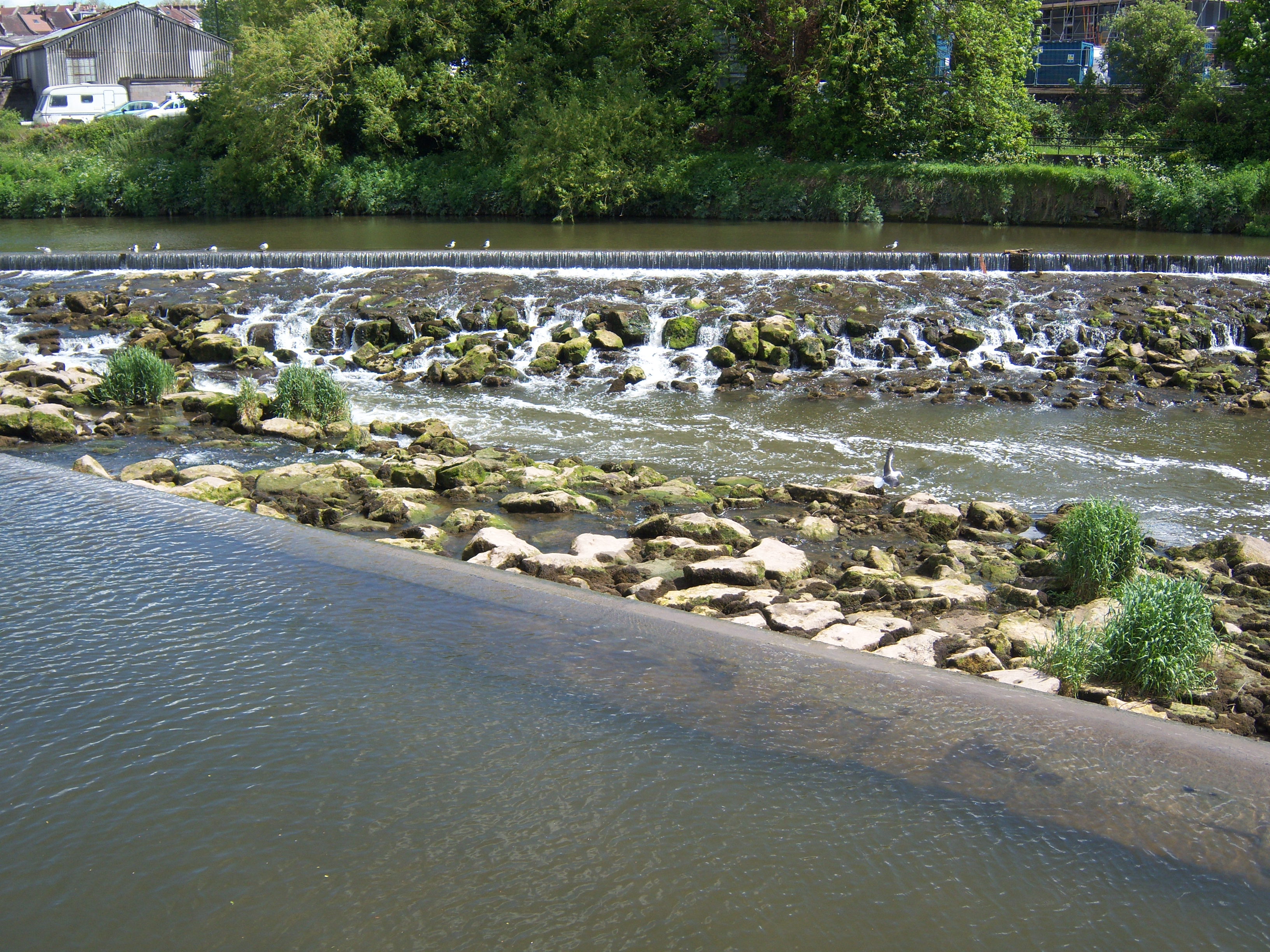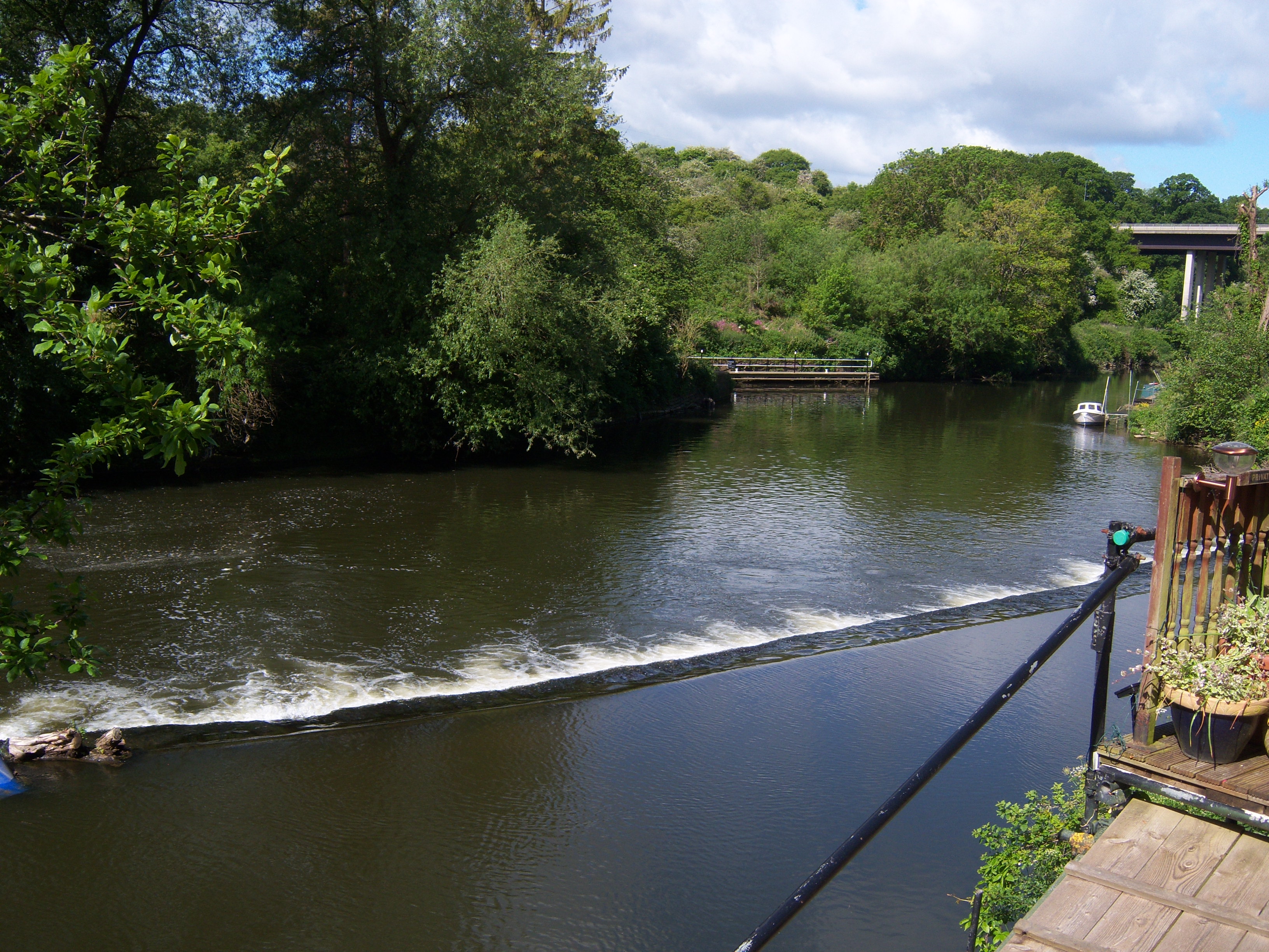 | A weir where the Avon enters into Bristol (near Hanmham Court farm) Note: There are two pubs here, "The Old Lock and Weir" and "The Chequers". |