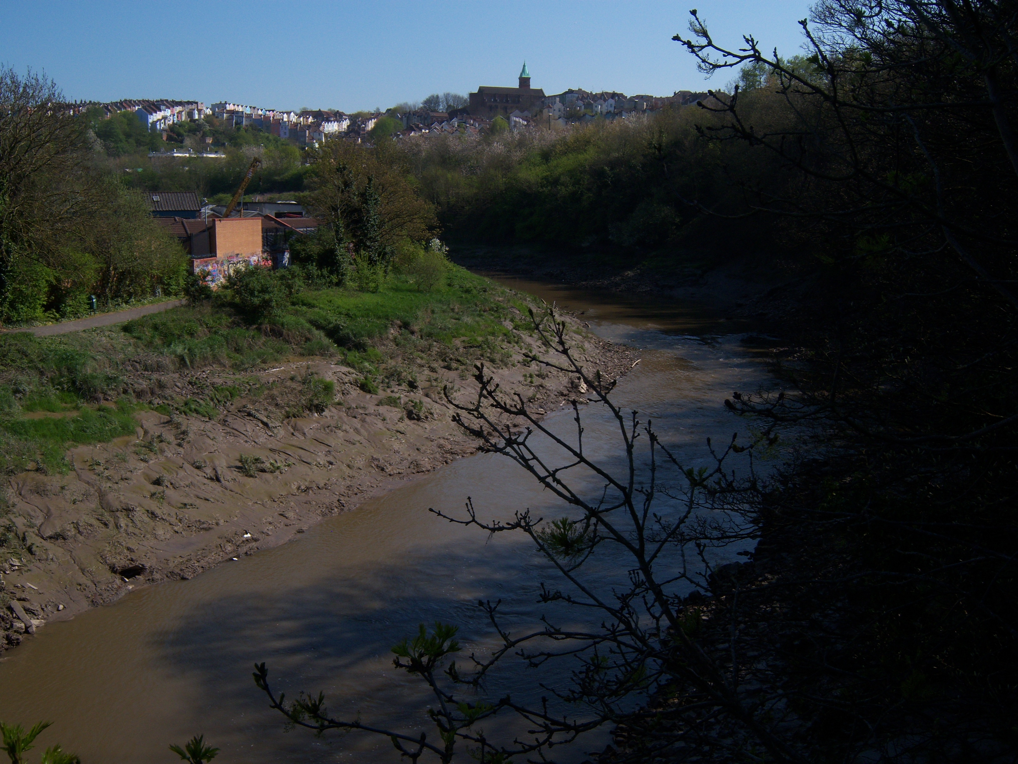 | You can walk along the Frome from near Cabot Circus, first along streets, then along the Frome Valley Walkway (just before it goes underground again you will find a little gate - this was at the bottom of Canton Street - the street where I was born).